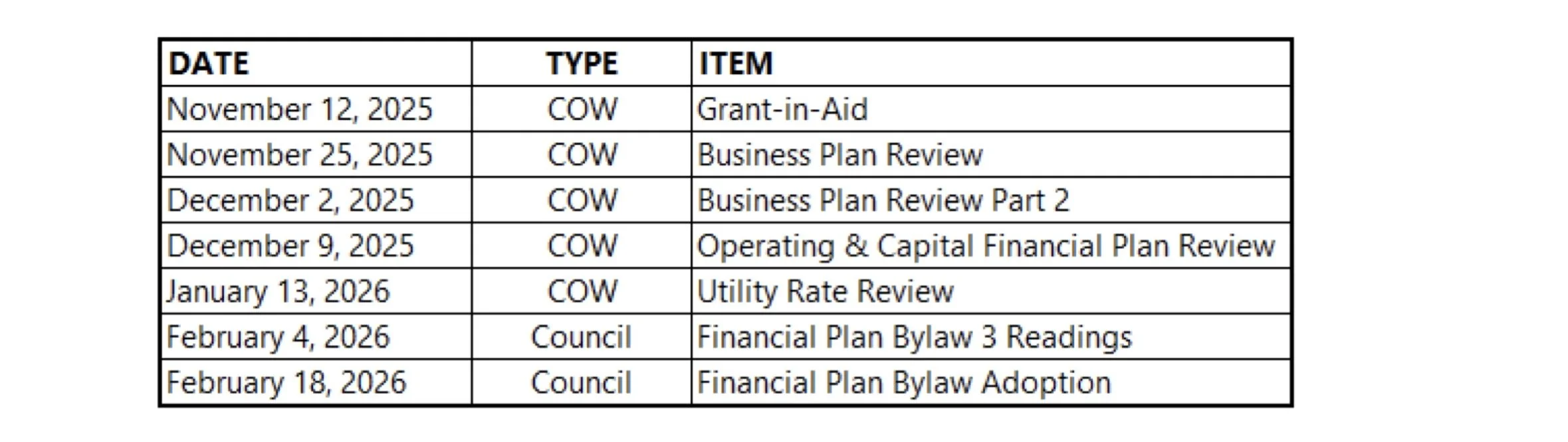 Related to the above, is my observation based on review of documents that are publicly available from the Municipality of North Cowichan regarding the 2026 budget, is that the Council only appears to be providing oversight on the difference in costs, and not the costs as a whole. I’ve come to this conclusion based on the numbers disclosed in the most recent 2026 Budget Update Staff report. They also appear to be significantly behind the timeline they set for themselves back in August 2025 when they set out the following schedule: