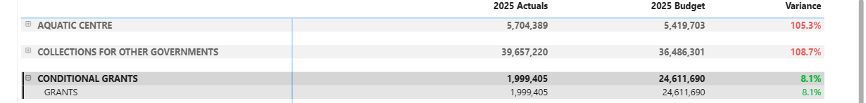 My theory as to why this data is not included in the financial bylaw, is that if you look at the 2025 Budget dashboard, you will be see that the Municipality has currently only received 8% of the grant monies they have budgeted.