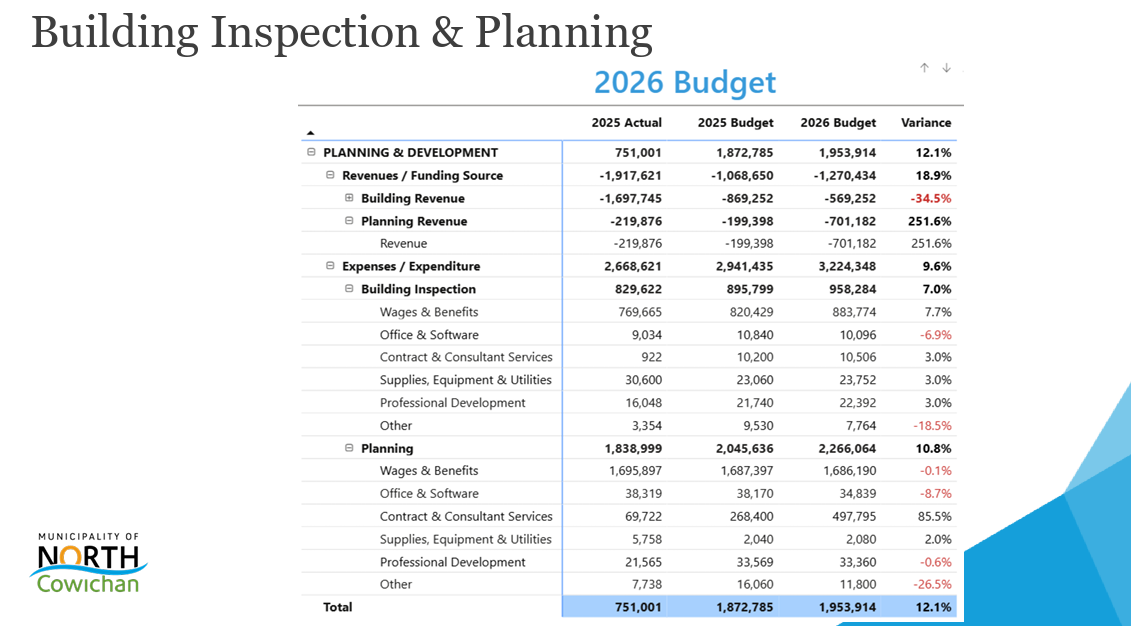 So this means, that the fiscal year has already started without an approved budget or plan. This also explains why the other municipalities I surveyed in a previous blog post had already nailed down their 2026 budgets and tax rates months prior to North Cowichan.