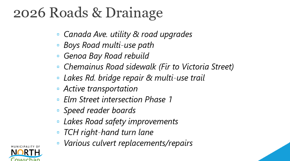 Let’s move on now to proposed Capital spending in 2026 for the Municipality of North Cowichan: