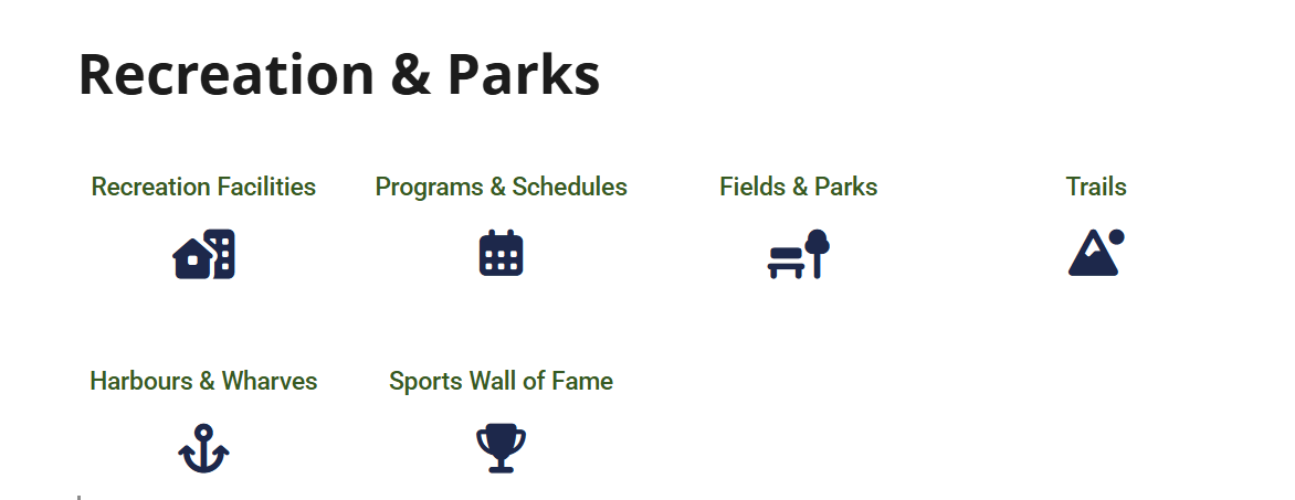 The visual of recreation options shared above, is taken from the Parks and Recreation section of the municipal website.